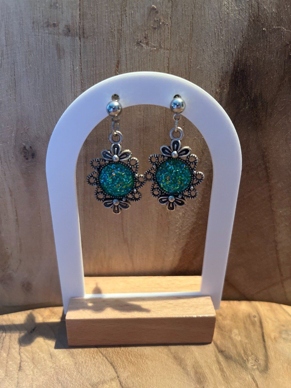 Ces boucles d'oreilles cabochon allient finesse et originalité.